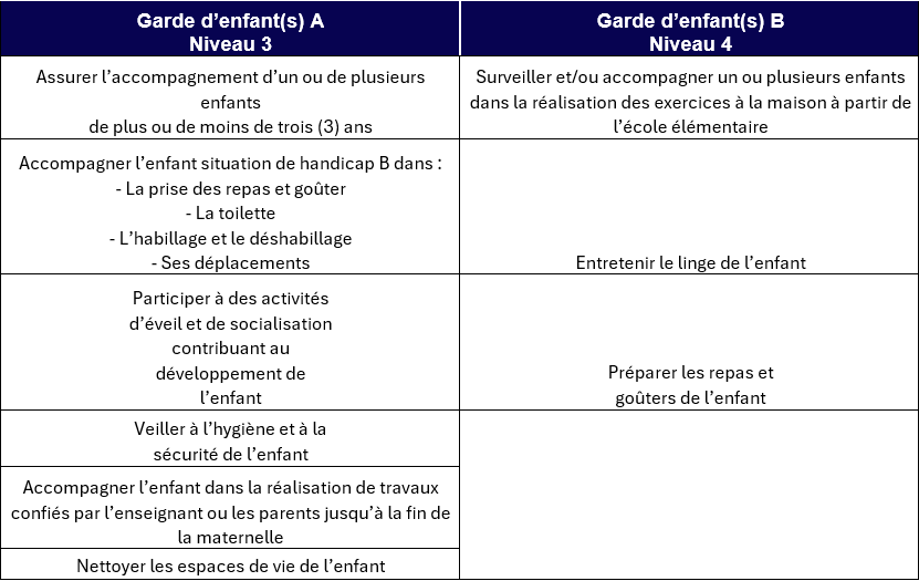 De plus, l’emploi de garde d’enfants en situation de handicap fait désormais partie de la grille, allant du niveau 4 au niveau 6 en fonction des tâches effectuées.